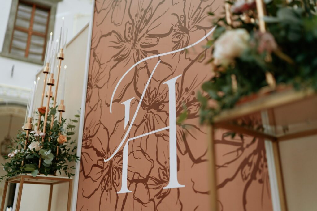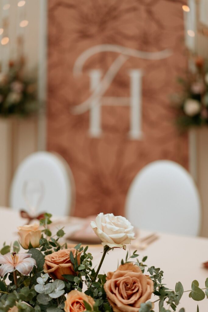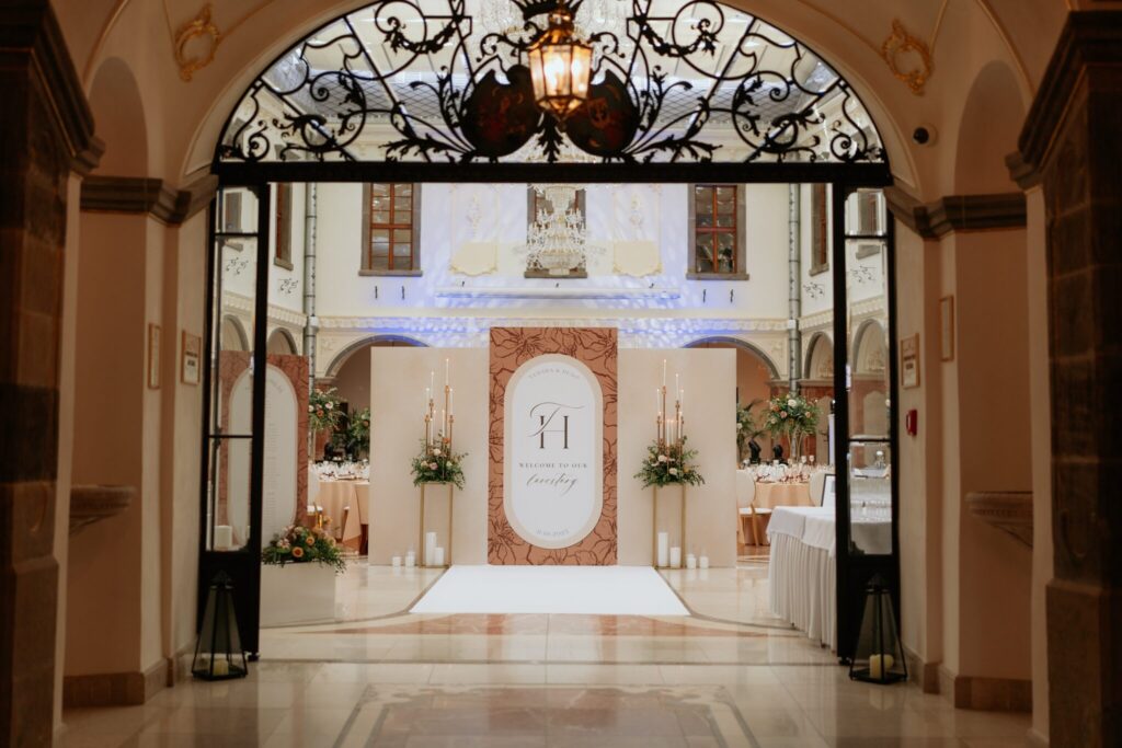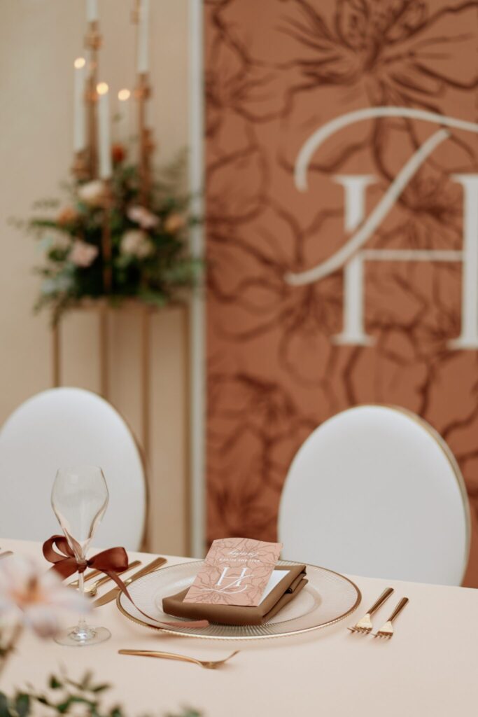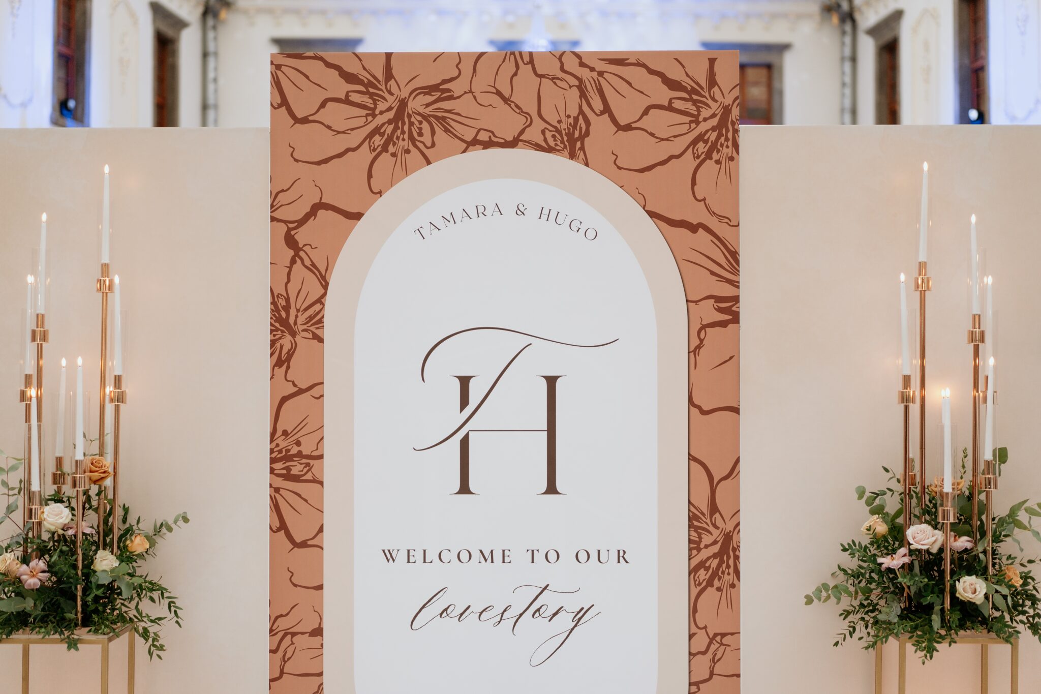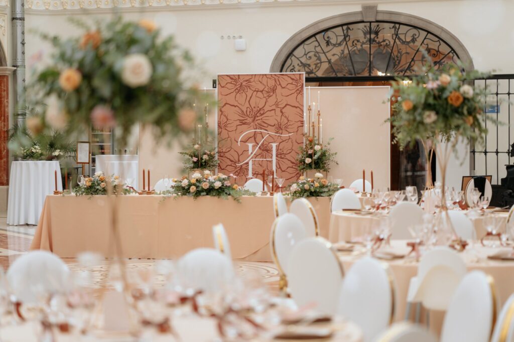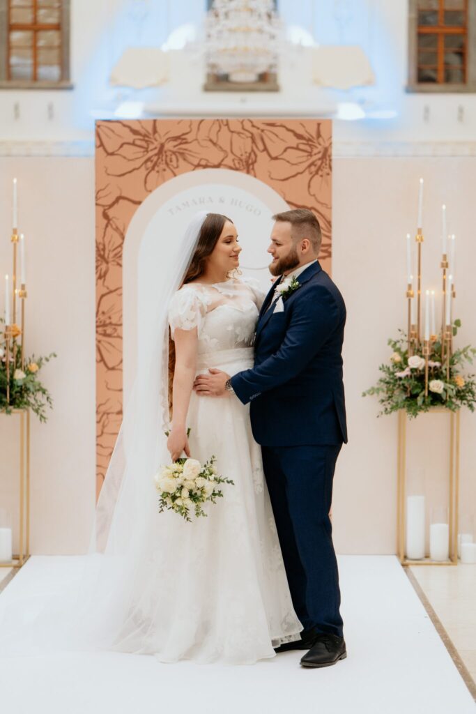 Pre Tamarku a Huga sme pripravili svadobný dizajn Mocha mousse s originálnou uvítacou zónou, ktorá poslúžila ako fotostena pre svadobných hostí a aj ako dokonalé pozadie pre svadobnú romantiku so všetkým, čo k nej patrí :).