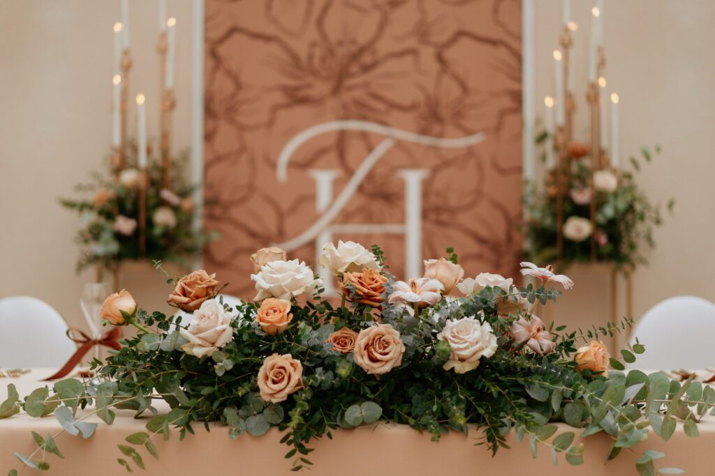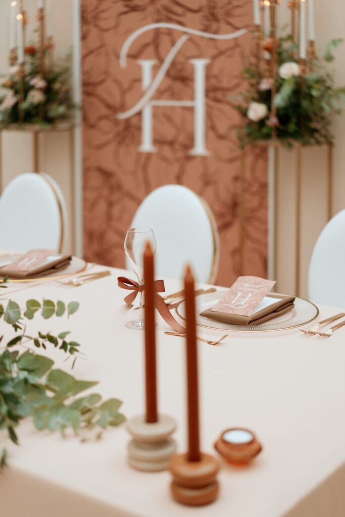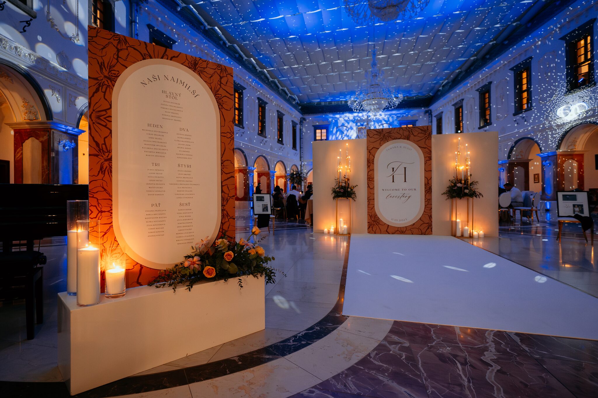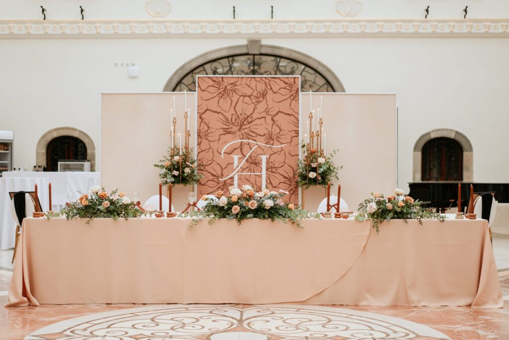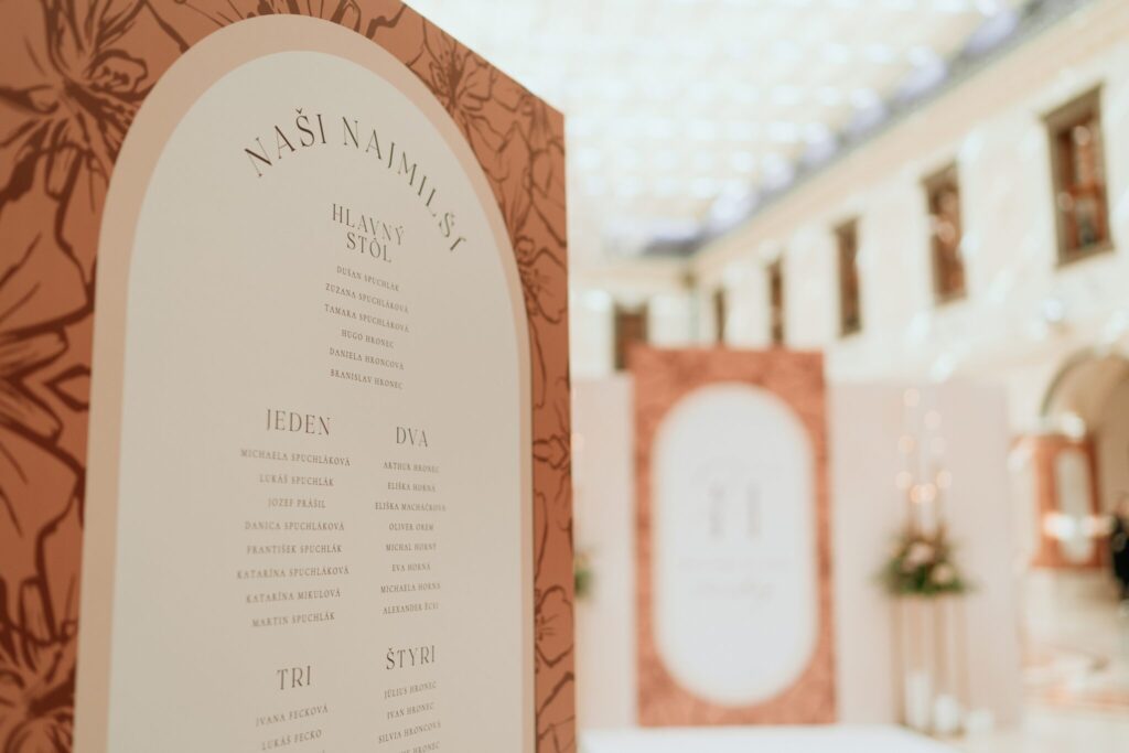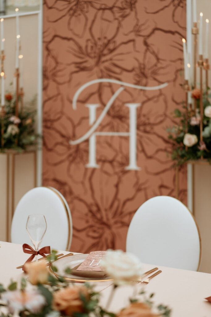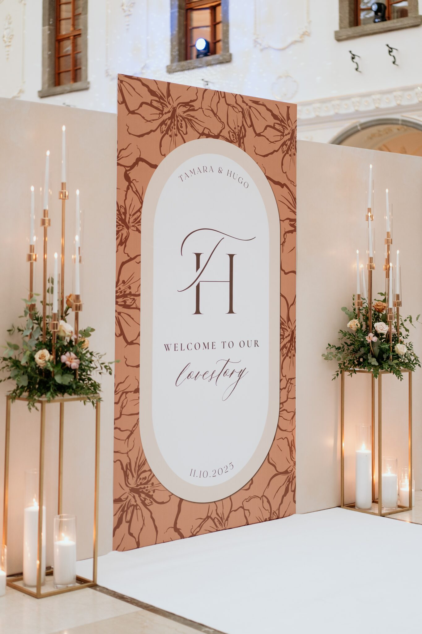 Pre Tamarku a Huga sme pripravili svadobný dizajn Mocha mousse s originálnou uvítacou zónou, ktorá poslúžila ako fotostena pre svadobných hostí a aj ako dokonalé pozadie pre svadobnú romantiku so všetkým, čo k nej patrí :).