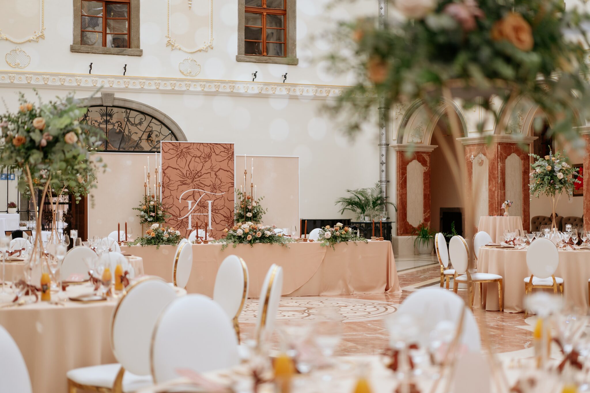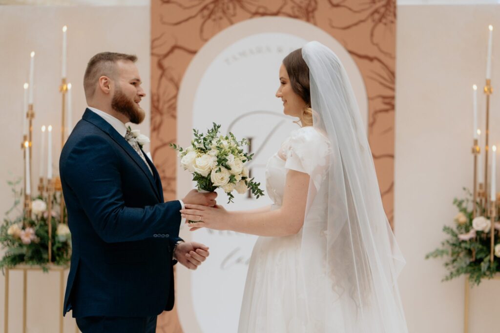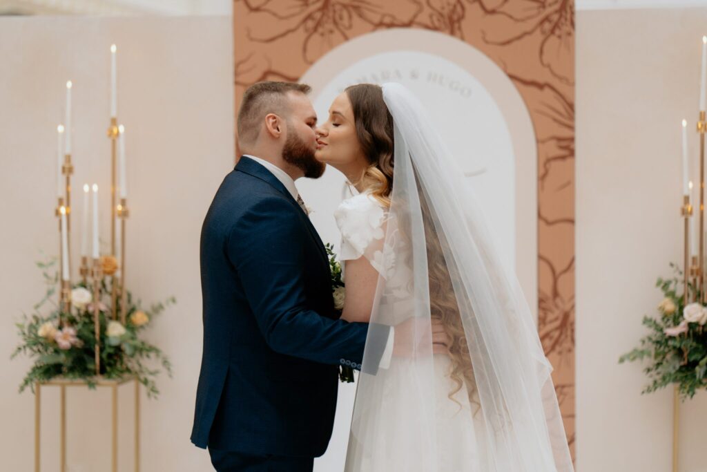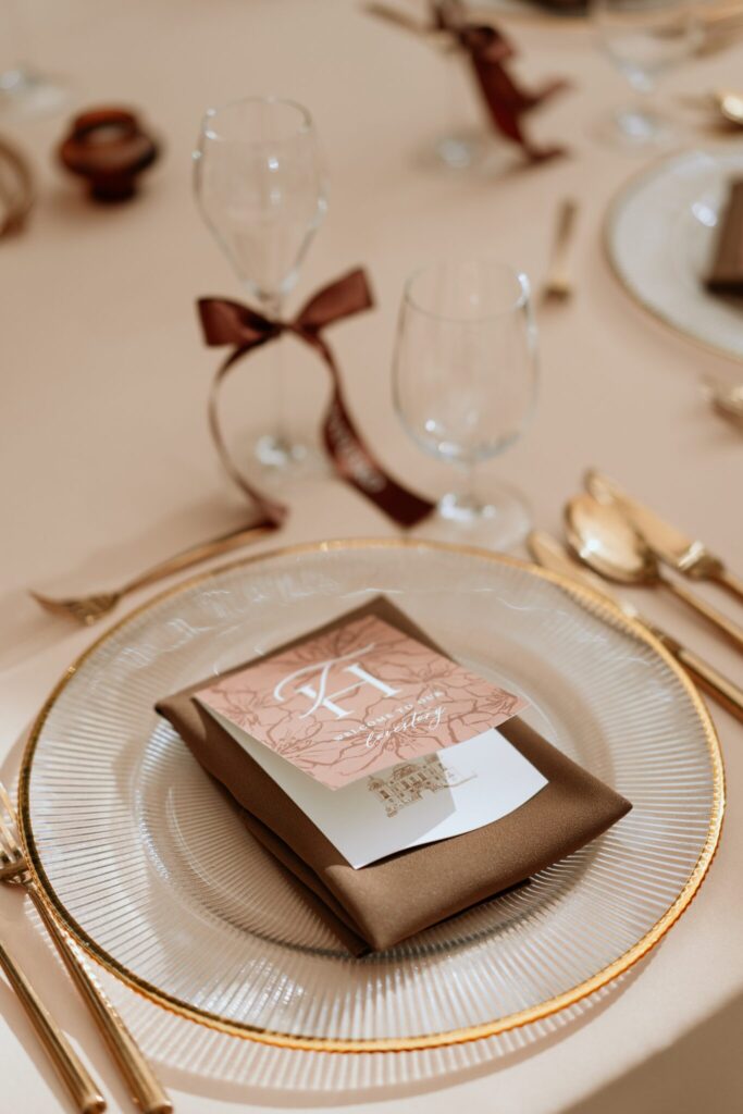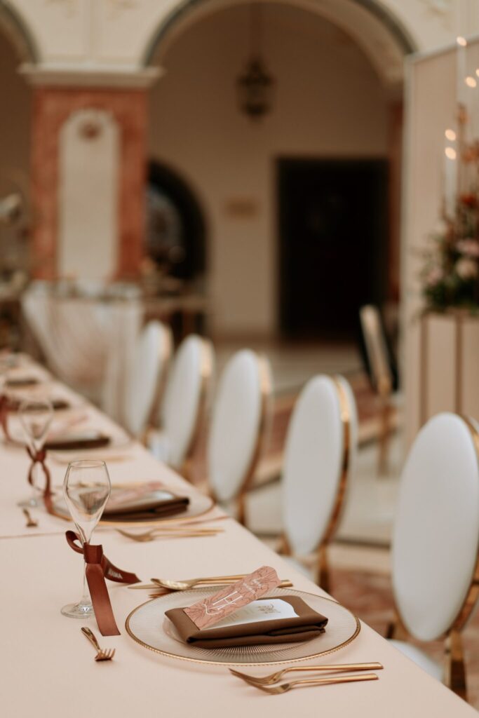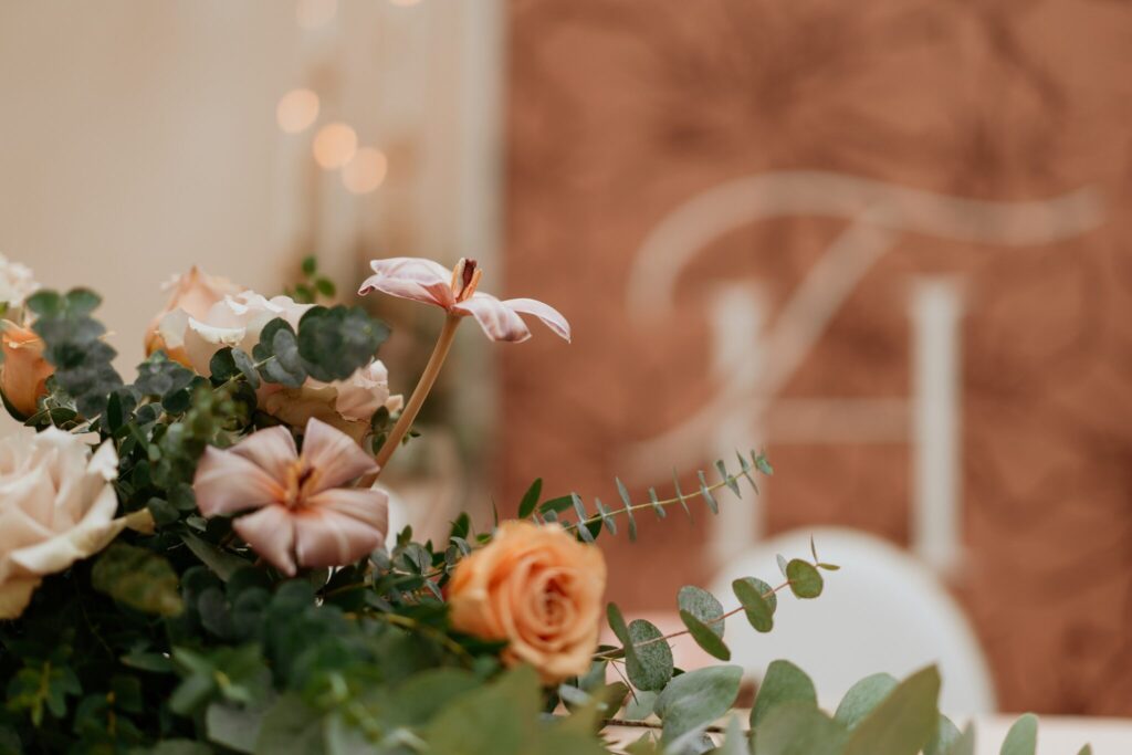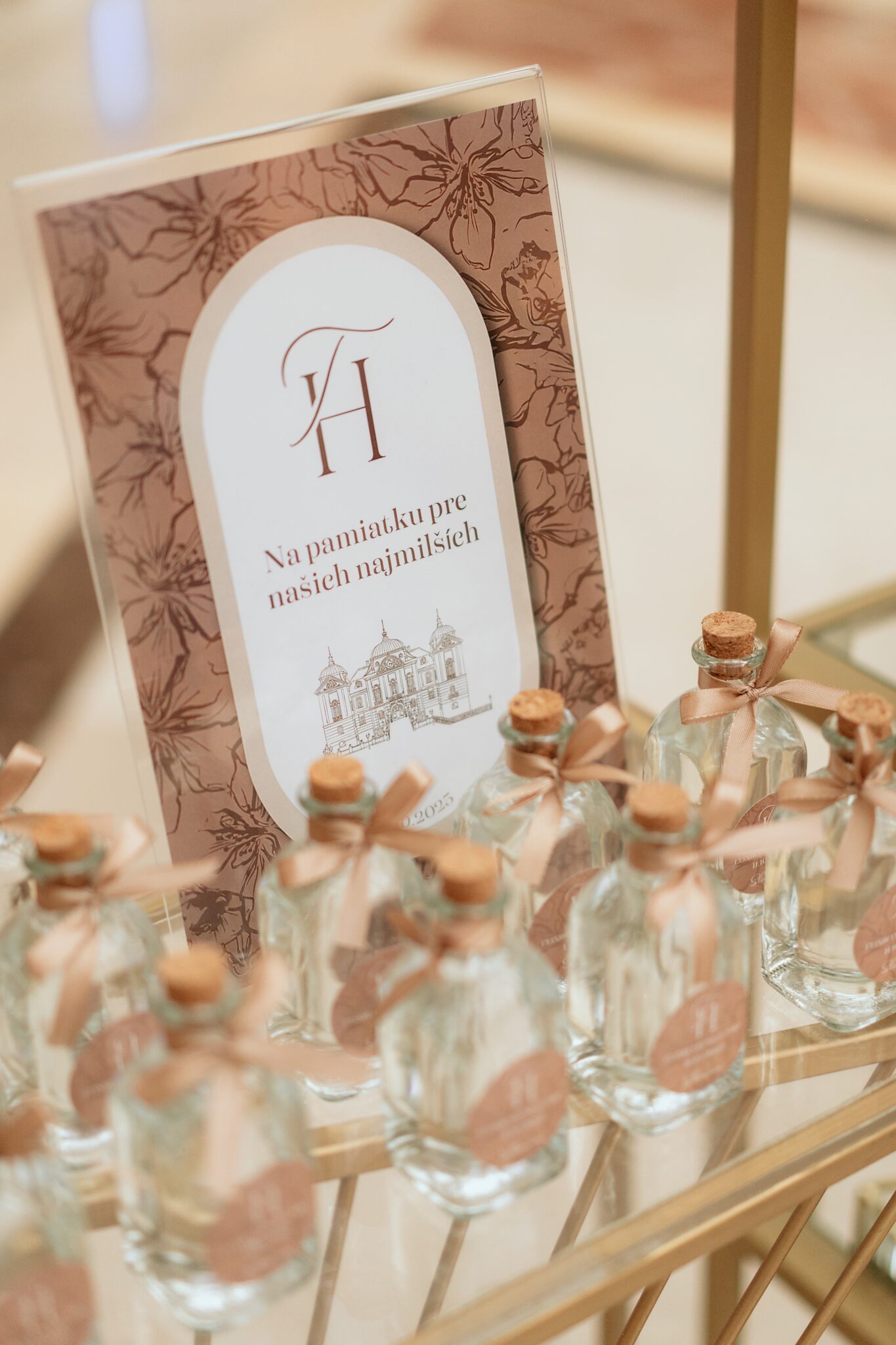 Pre Tamarku a Huga sme pripravili svadobný dizajn Mocha mousse s originálnou uvítacou zónou, ktorá poslúžila ako fotostena pre svadobných hostí a aj ako dokonalé pozadie pre svadobnú romantiku so všetkým, čo k nej patrí :).