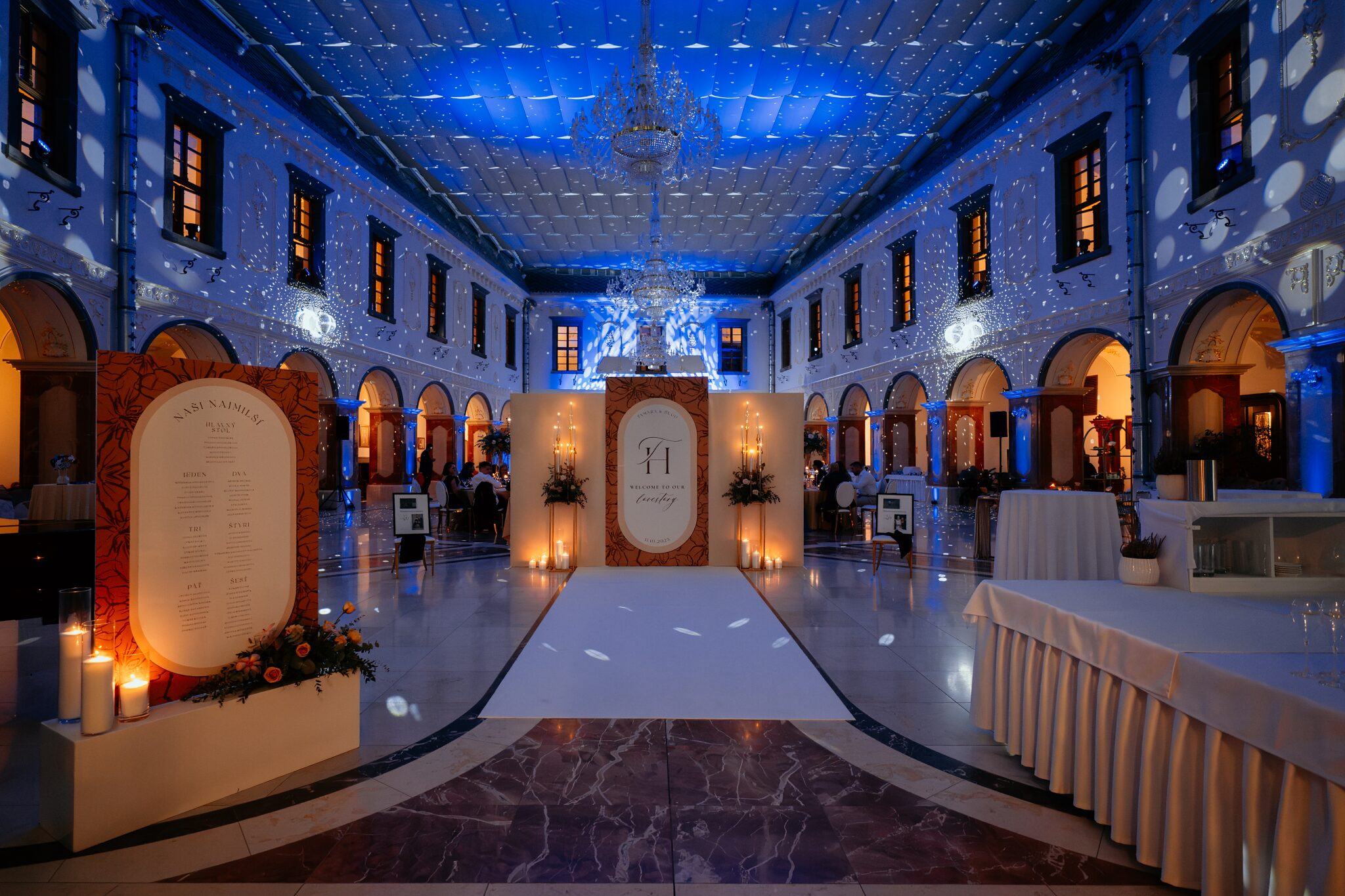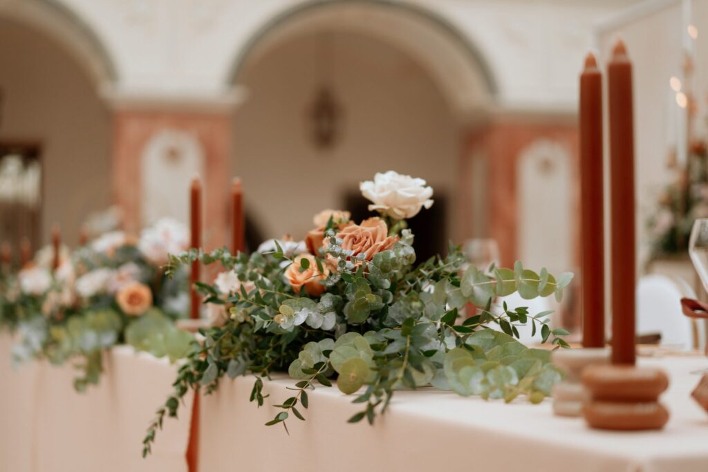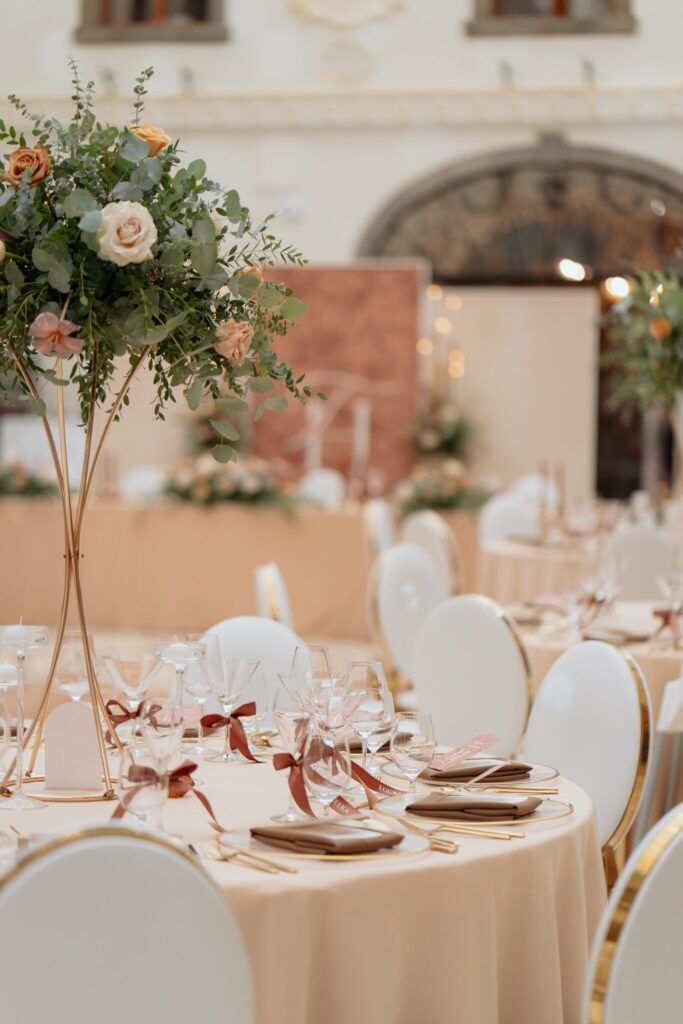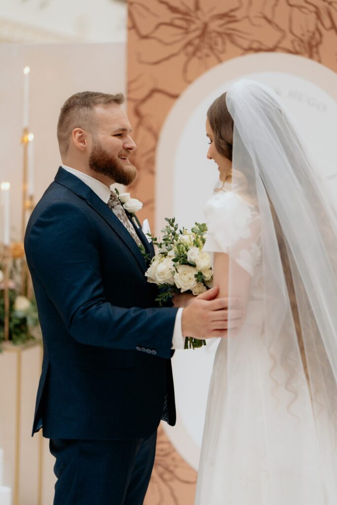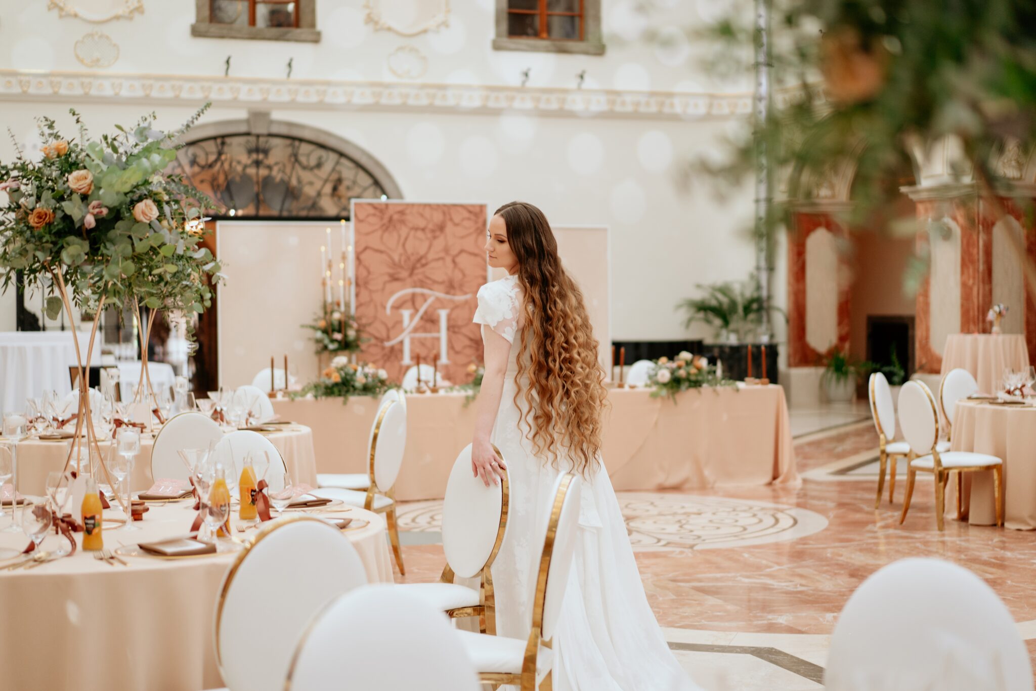 Pre Tamarku a Huga sme pripravili svadobný dizajn Mocha mousse s originálnou uvítacou zónou, ktorá poslúžila ako fotostena pre svadobných hostí a aj ako dokonalé pozadie pre svadobnú romantiku so všetkým, čo k nej patrí :).