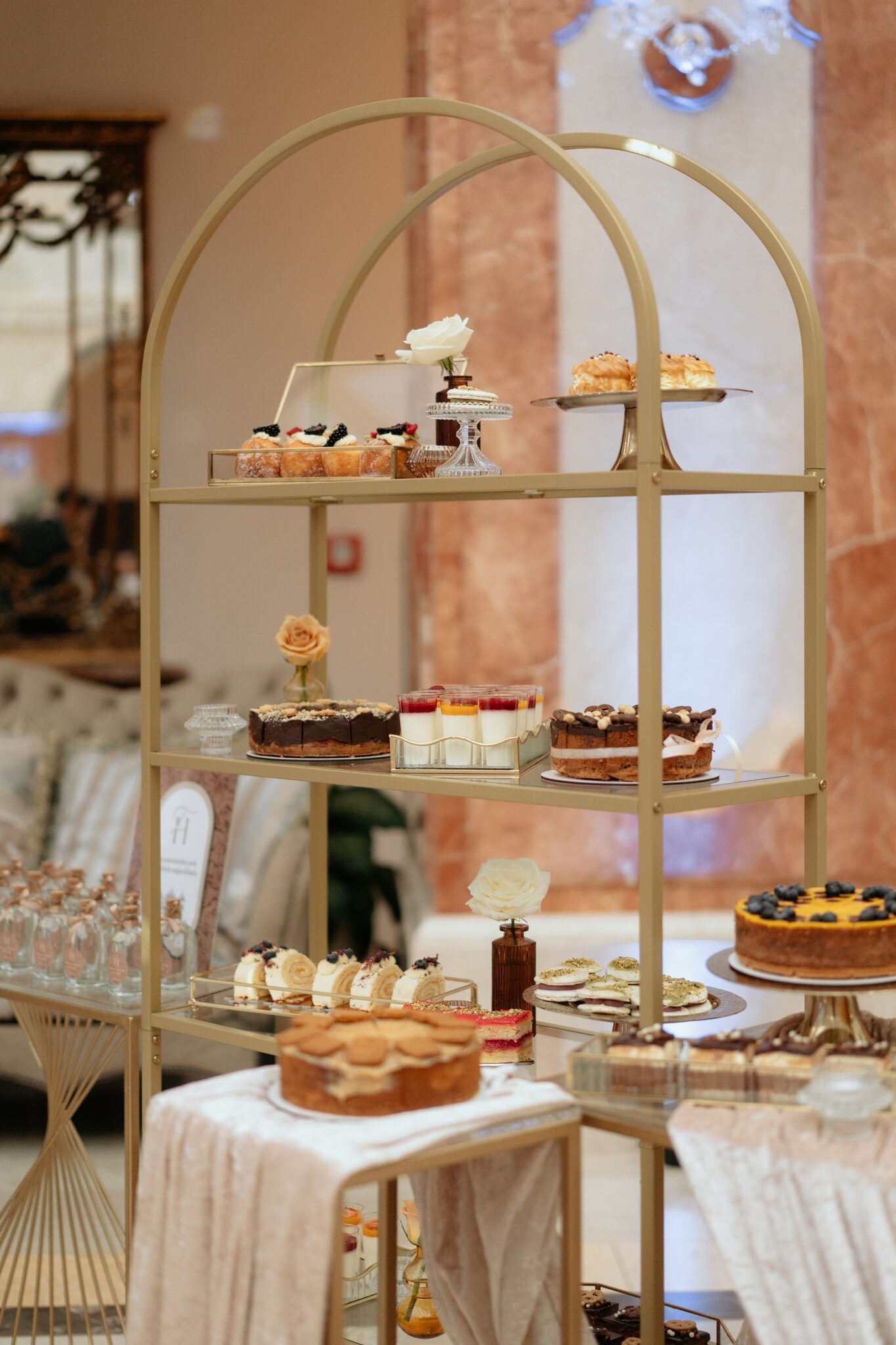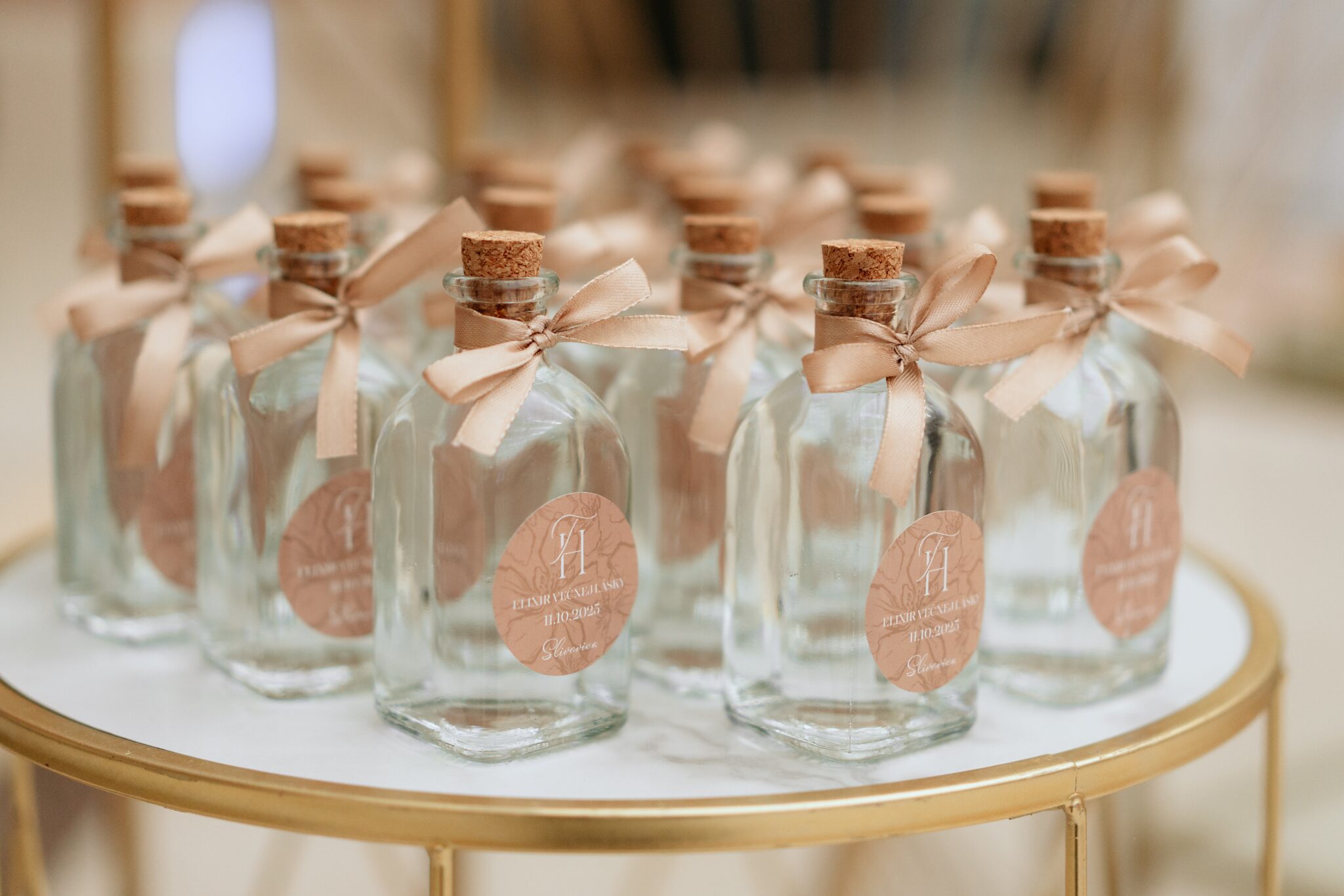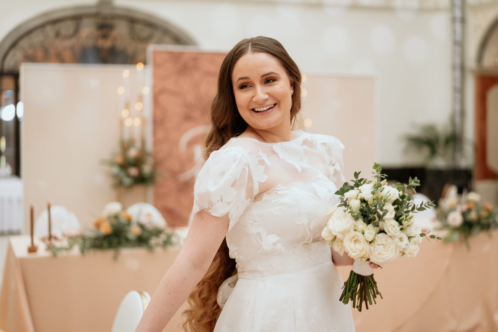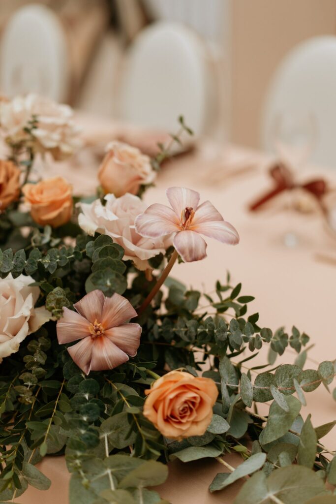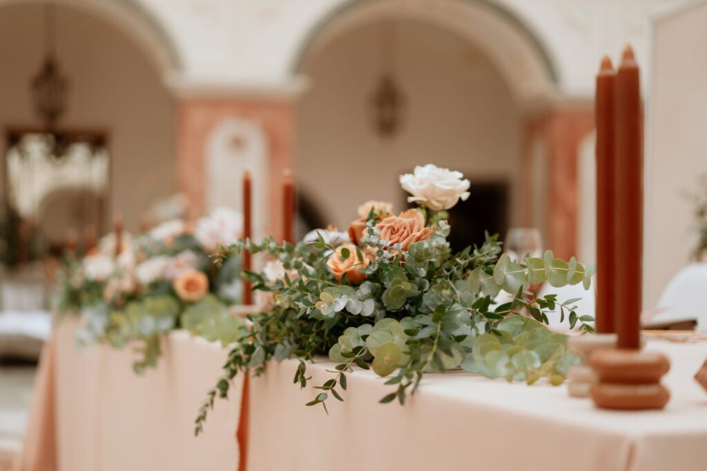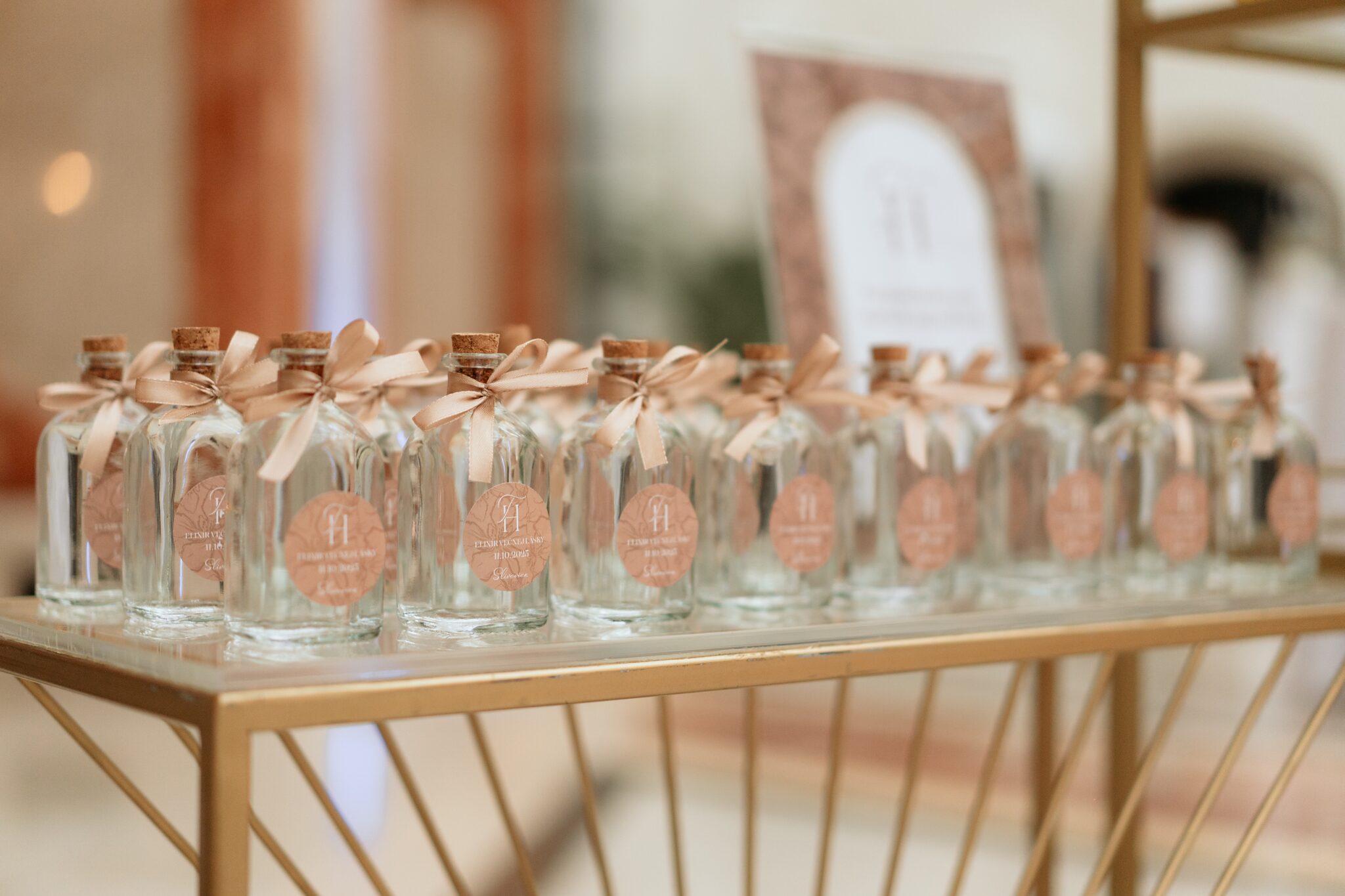 Pre Tamarku a Huga sme pripravili svadobný dizajn Mocha mousse s originálnou uvítacou zónou, ktorá poslúžila ako fotostena pre svadobných hostí a aj ako dokonalé pozadie pre svadobnú romantiku so všetkým, čo k nej patrí :).
